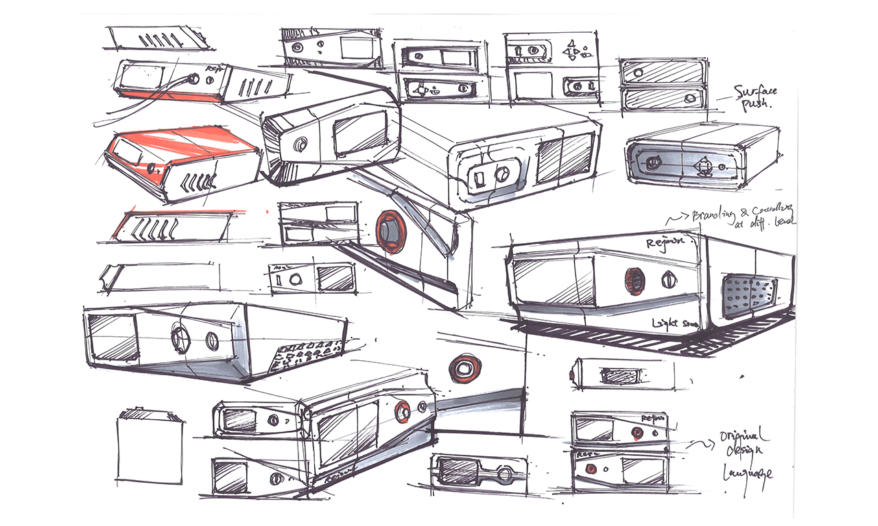 Concept Sketches: Early explorations to visualize form, function, and user interaction.